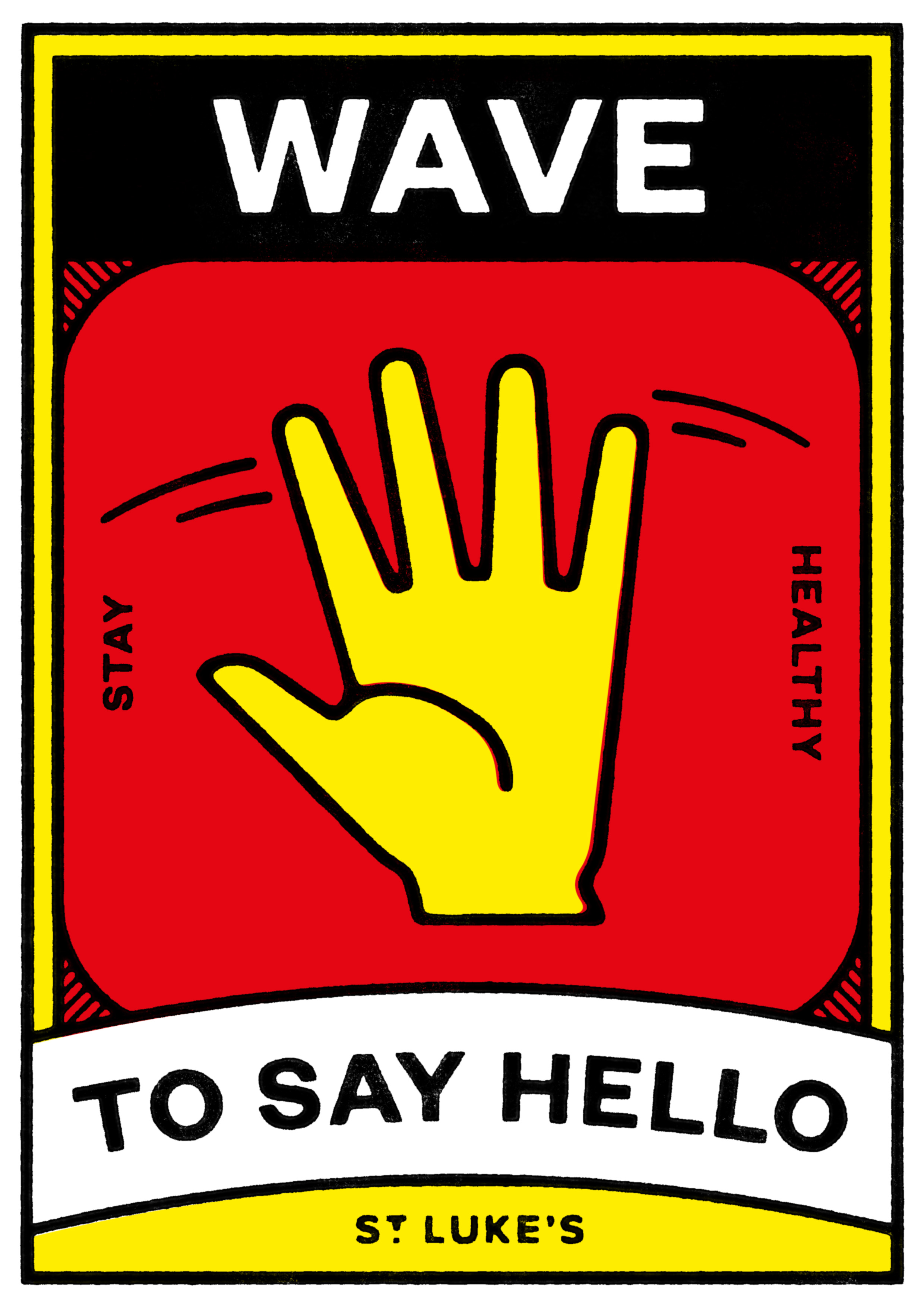 Advisory poster to discourage handshakes at St. Luke’s Communications due to the Covid-19 pandemic.